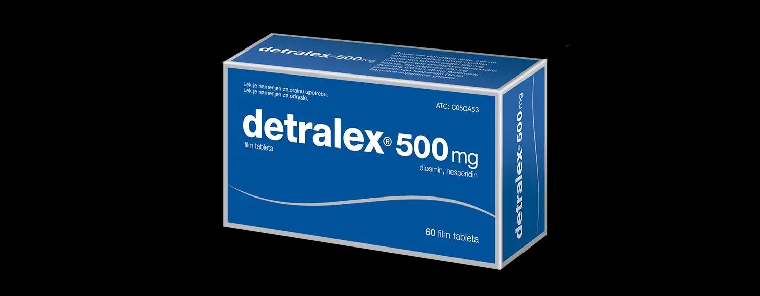 1. Šta je lek Detralex i čemu je namenjen Lek Detralex sadrži mikronizovanu prečišćenu, flavonoidnu frakciju i pripada grupi lekova koja povećava venski tonus i povećava otpornost kapilara (venotonik i vaskuloprotektiv). Lek Detralex se koristi u lečenju simptoma poremećaja venske cirkulacije – venskog krvotoka (teške noge, bol, jutarnji umor nogu) i kratkotrajnom lečenju simptoma povezanih sa hemoroidalnim poremećajima.